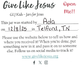 Teaching children how to show love and compassion will serve them long into adulthood. Check out Jars for Jesus and give it a try! It can be done independently or used as an activity for kids that come to Giving Group meetings with their parents.